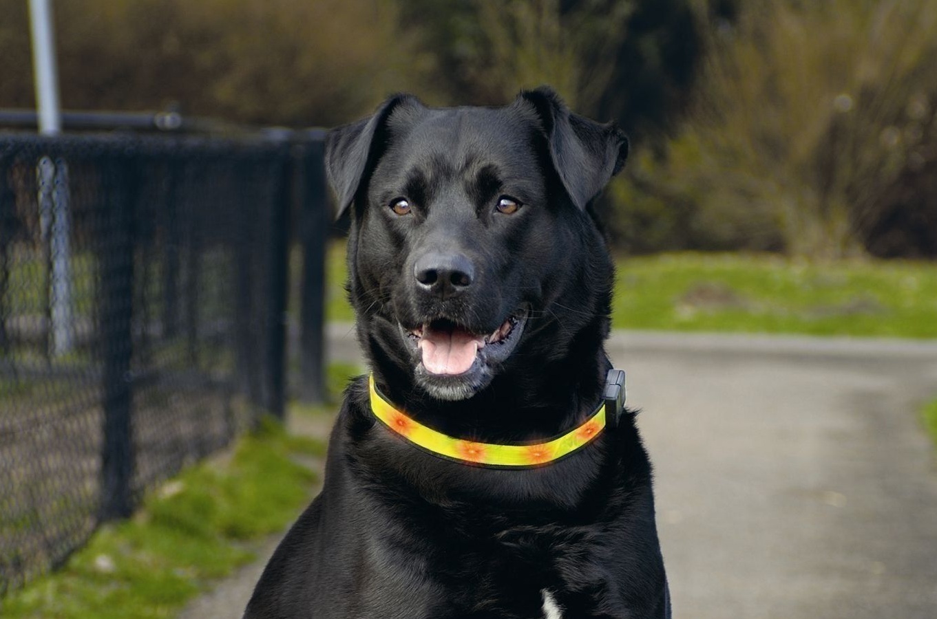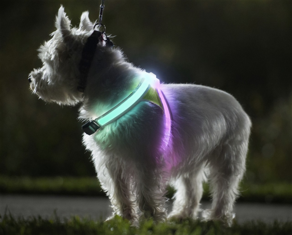 The glowing collar brings tangible benefits to owners of pets during a walk in the dark: