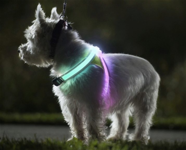 Luminous accessory for dogs, working with a diode tape and a built-in switch, is considered the most convenient to use.