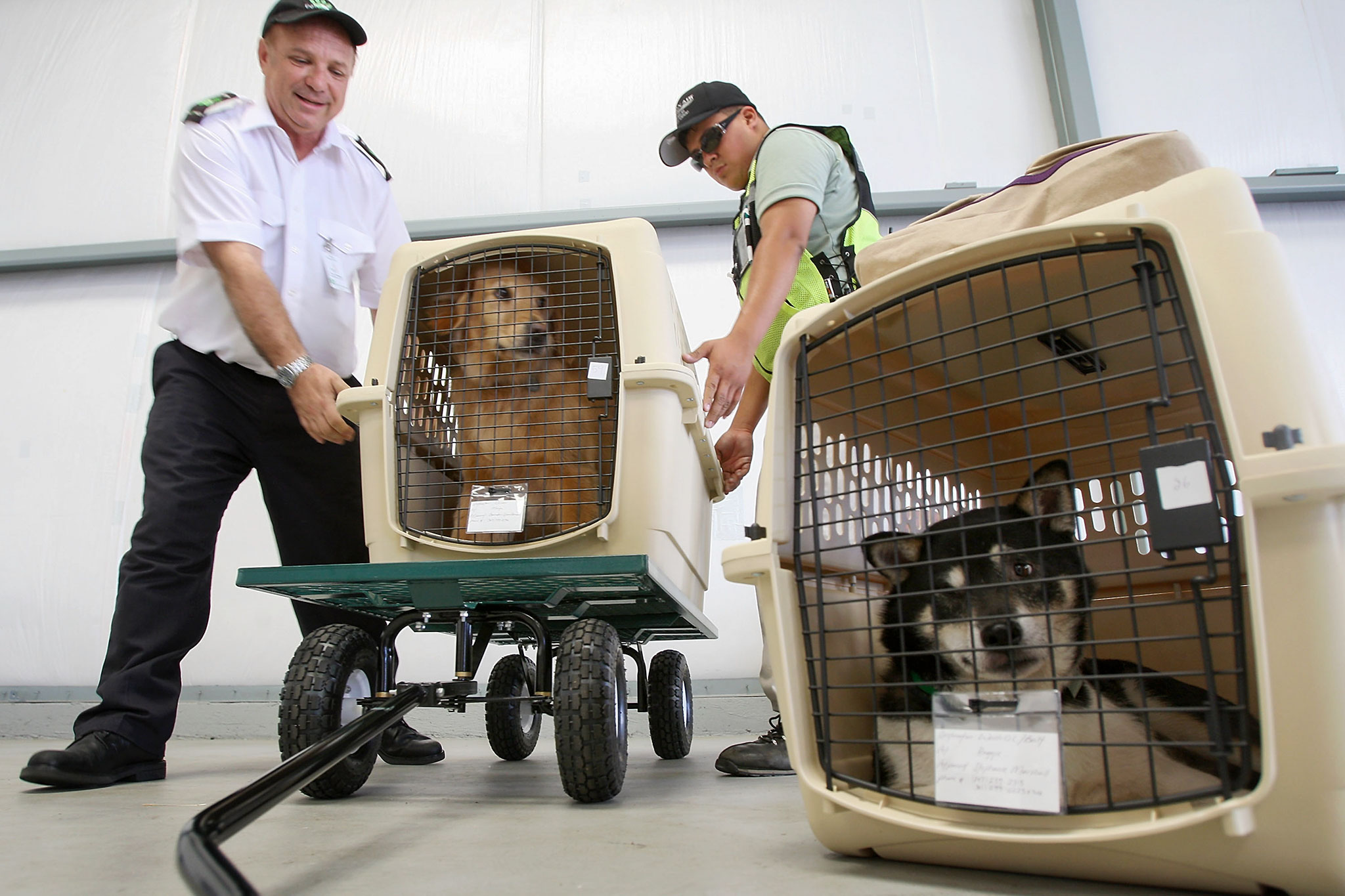 Cells or containers in this case are chosen much larger - at least 1.55 meters for each side. Arriving at the airport, the owner goes to check in baggage, where he draws out his pet. After filling in all the necessary papers for carrying, a special sticker is stuck with the bar code necessary for the distribution of goods for the flight. Then the dog goes to the compartment, in which pallets for cages are already fixed.
