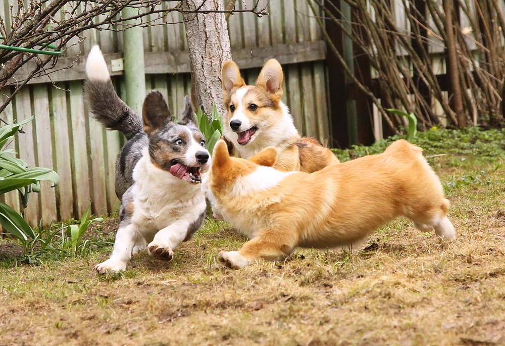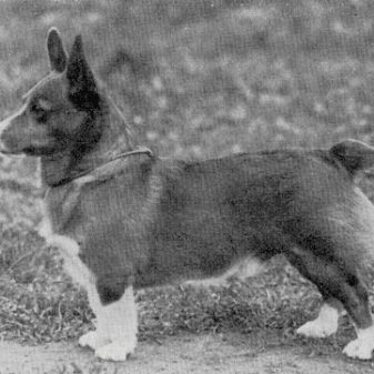 The nose is painted black, the eyes are slanting brown, small, framed by dark, almost black eyelids. The animal’s eyes are meaningful and often interested. The coat in comparison with cardigans is longer, points with sharp contours can be observed on the face, limbs and sternum. The length of the paws is small, and this is the main drawback of animals, as it negatively affects their working qualities.