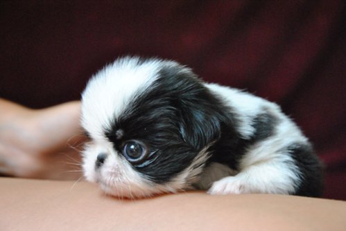 A Japanese Chin puppy should be a mixture of pranks, curiosity, playfulness and quiet calm in a dream. These are all signs of a healthy puppy.