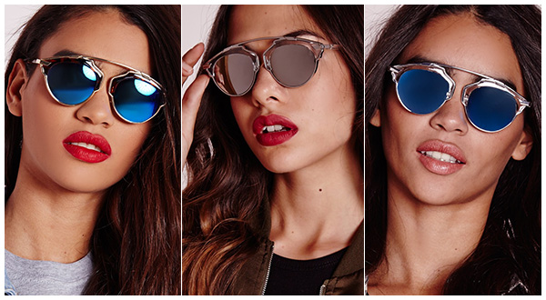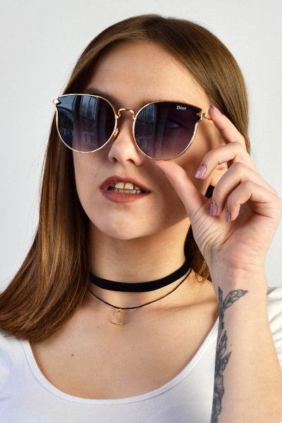 Feminine copies from Dior are equipped with high-quality and tinted glass. They are made in standard black and have a special purple tint.