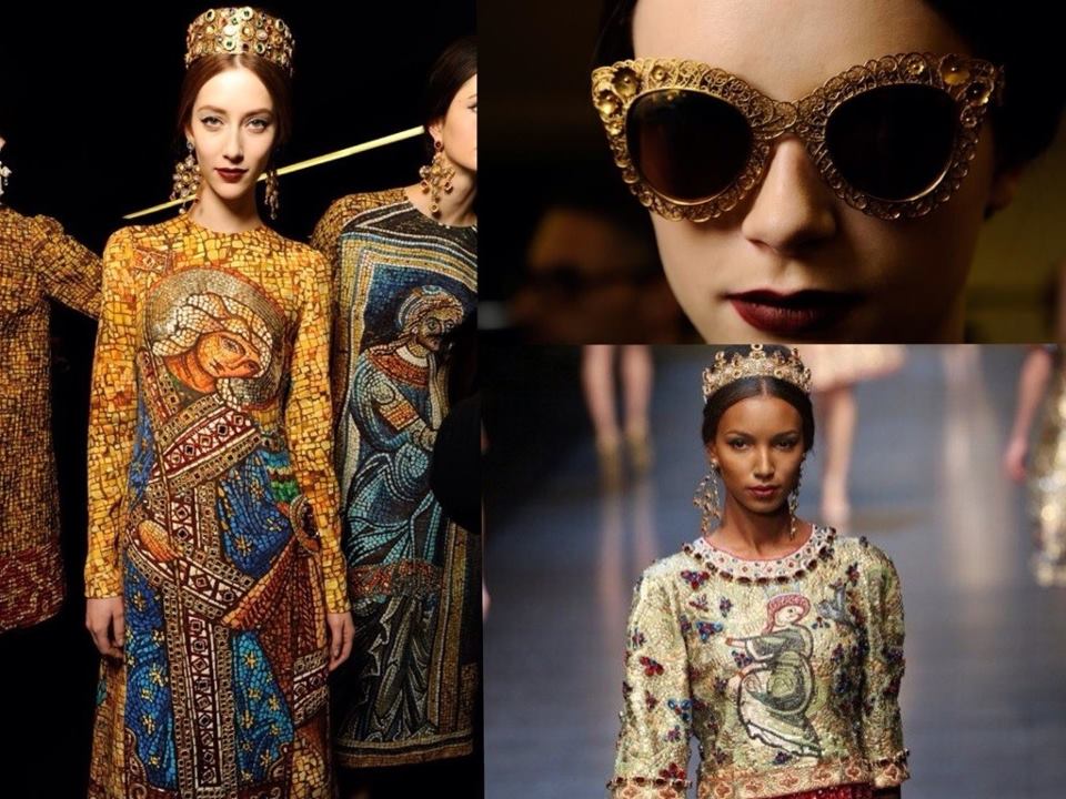 Another amazing collection from the Italian brand called Byzantine or "mosaic". It is represented by flirty accessories, the frames of which are complemented by a micro mosaic.