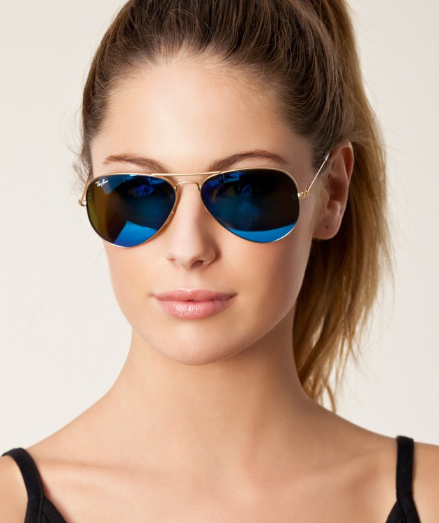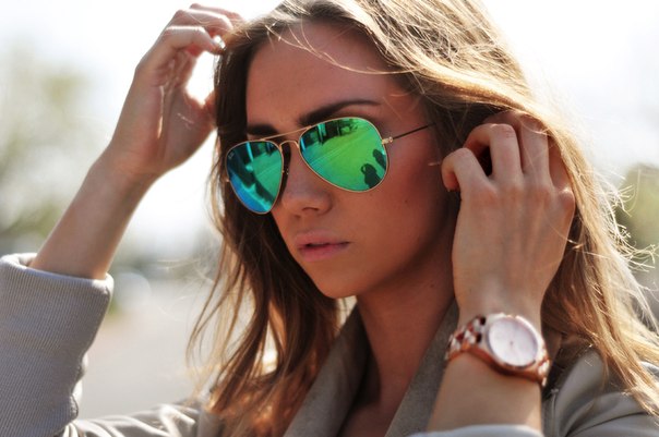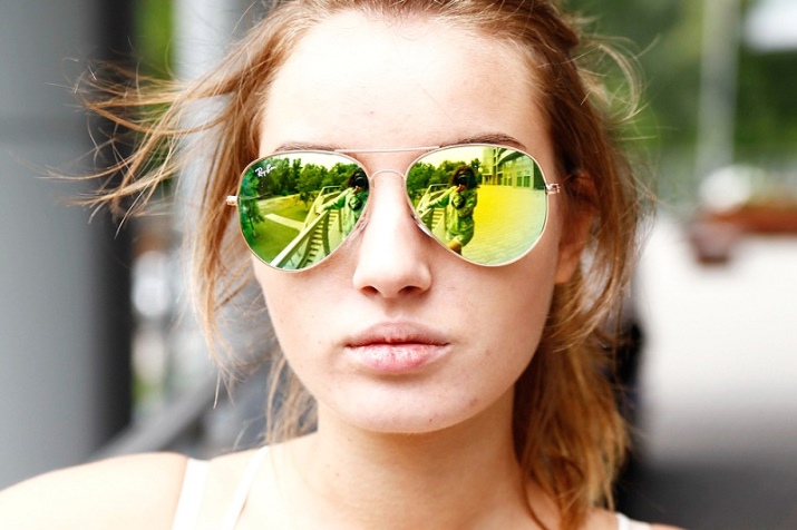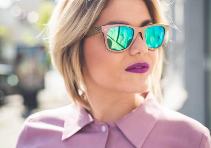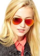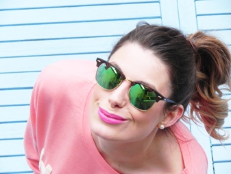 - Ray Ban Aviator. These are the most famous glasses. To date, have many variations of performance. They can be with a golden and silver-rimmed, with the usual dark glass or with a colored mirror. The hue of mirror glasses varies from pink to green. If you choose this model, then you will not go unnoticed.