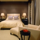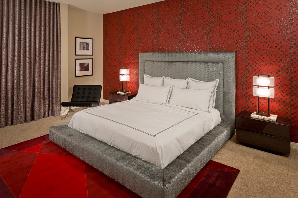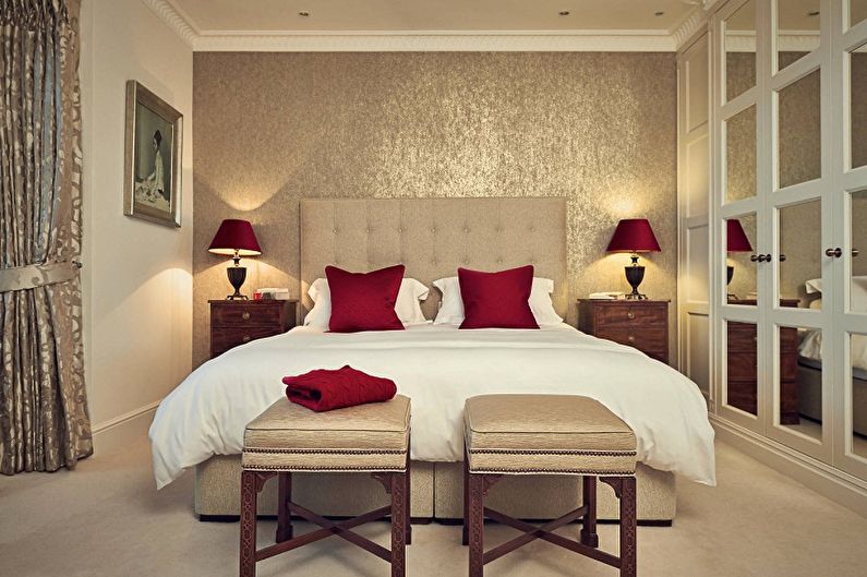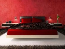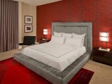 Finally, in the interior itself red approximates and enlarges all objects, makes them more massive: for a small bedroom this is far from the best option.
