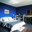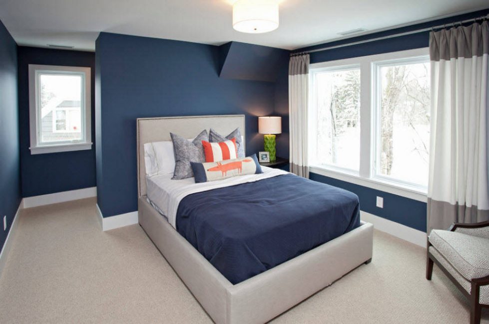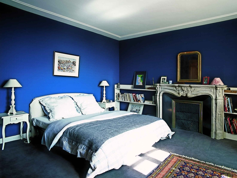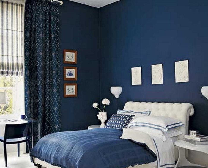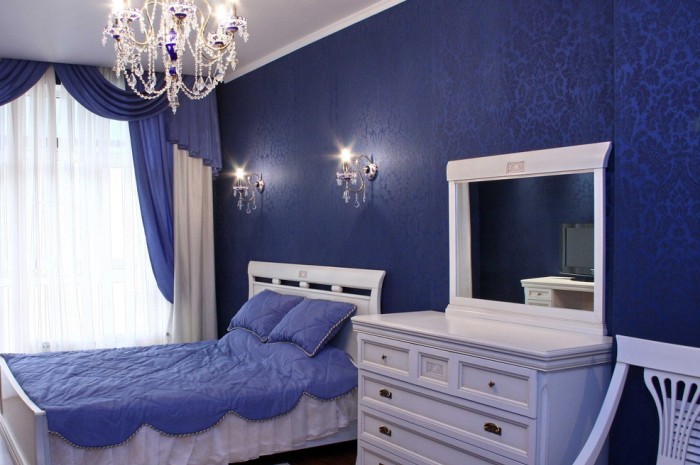 - Navy blue. Many residents of megacities are sure that the wallpaper and should be dark blue, adjusting to sleep and rest. But this option is suitable only for those who are not confused by dark shades, who can not only sleep in such a color environment, but also read, work, communicate.