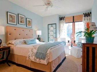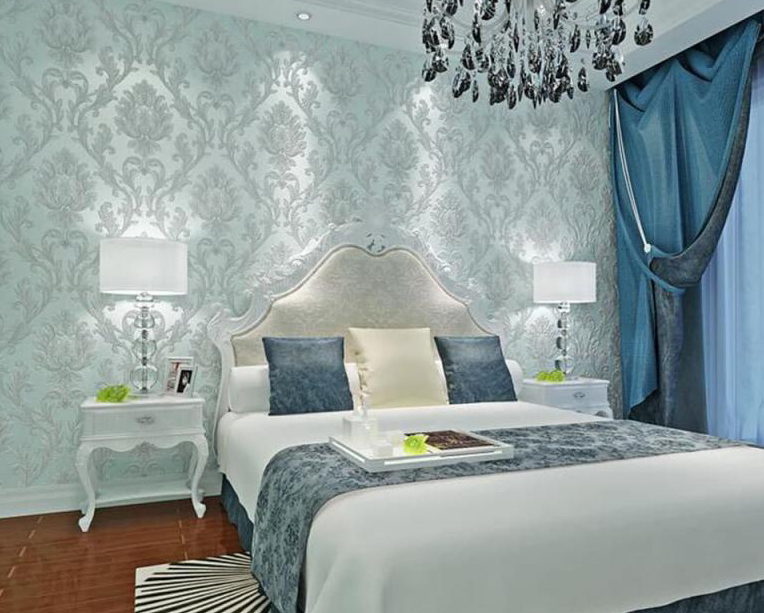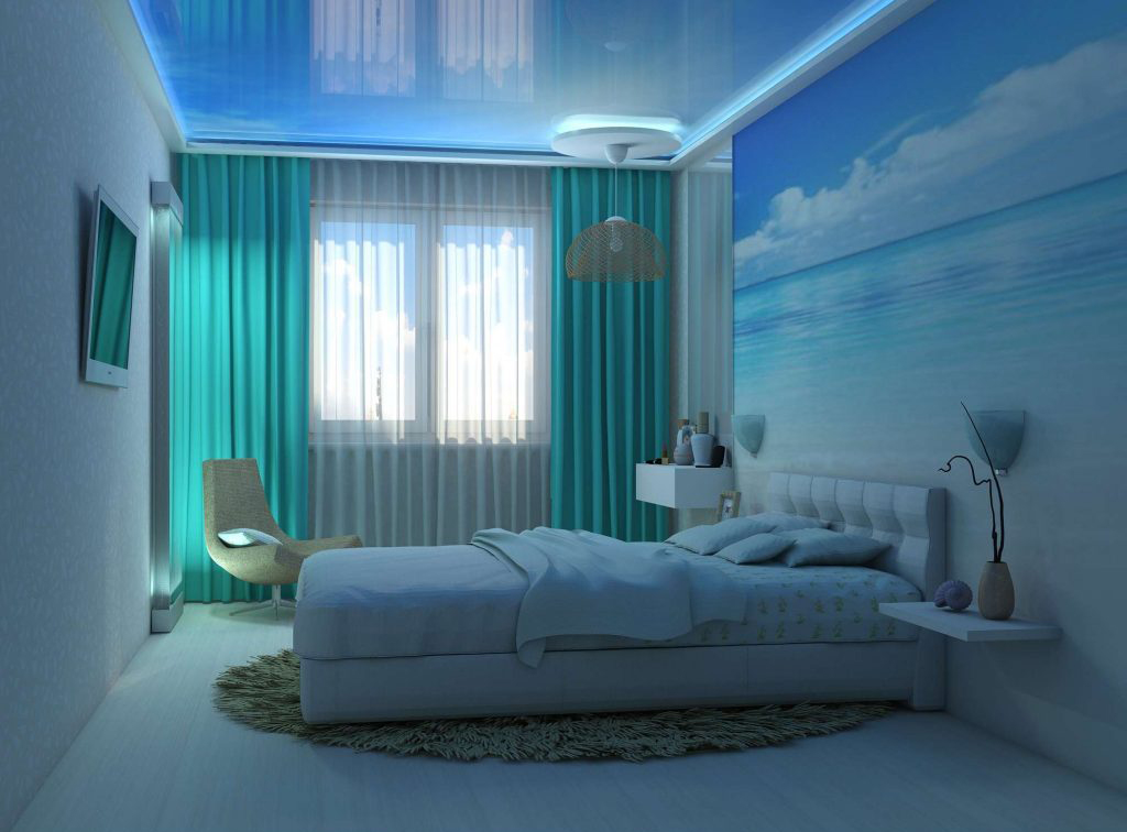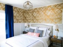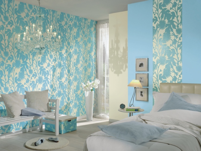 - in the hot bedroom do not buy wallpaper colors of fire, associated with heat, but pale blue and aquamarine wallpapers with a smooth shiny surface will only be the way to in such a bedroom;
