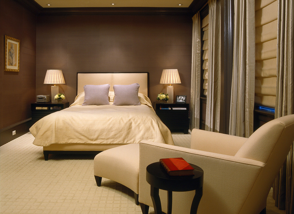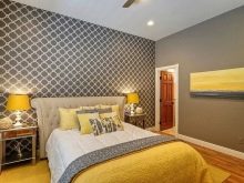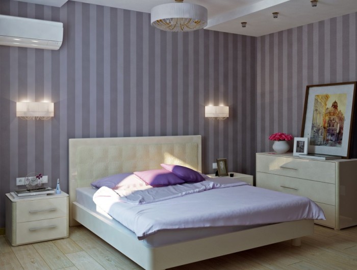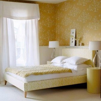 The yellow color is invigorating, but whether it is necessary in the bedroom. But you can choose muted shades of yellow, if you want exactly the color wallpaper to glue in this room. Yellow, diluted milky, very good option. Another controversial color can be called purple. For many people, it causes concern, so this color is not so good in the bedroom. But a softer lavender shade may be appropriate in the room, especially if the furniture is of delicate, soothing colors.