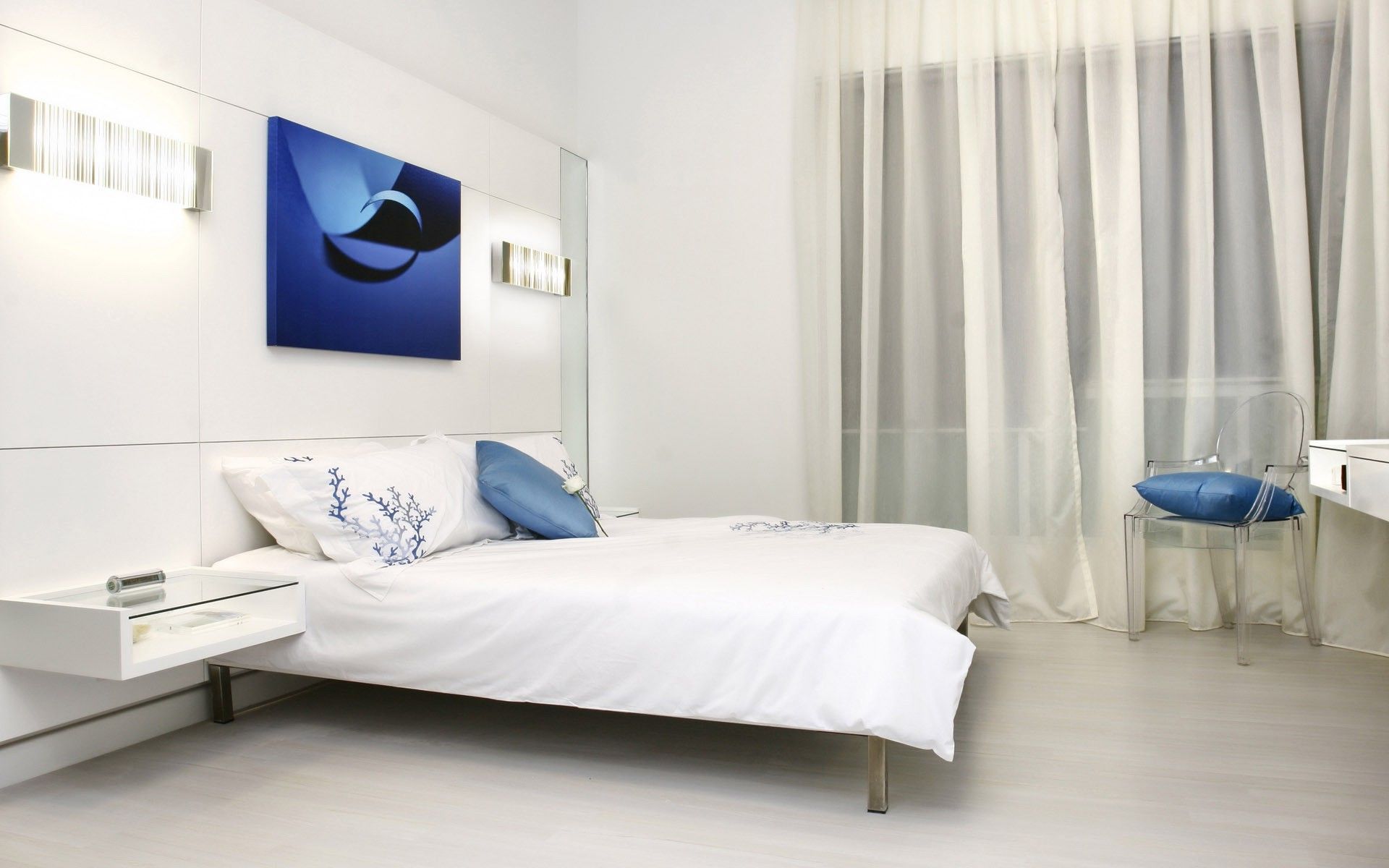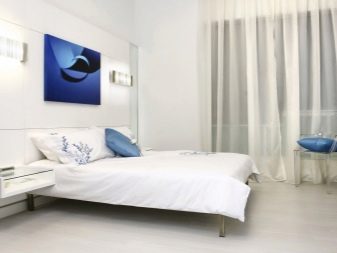 To enhance this action, to remove some of the coldness that they can bring to the interior, the furniture should be the color of warm sand. And the cover on the bed, and other textiles, even visually, should be soft, with a delicate, possibly fleecy structure.