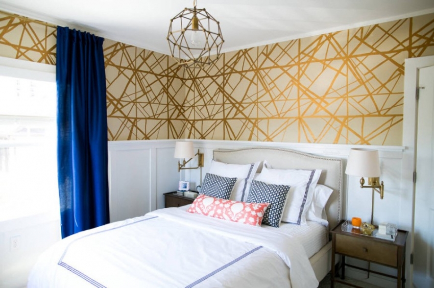 Do not be afraid to experiment, for example, in the fashion of today paintings from wallpaper sections, which can decorate the headboard.