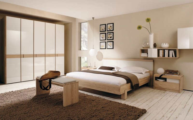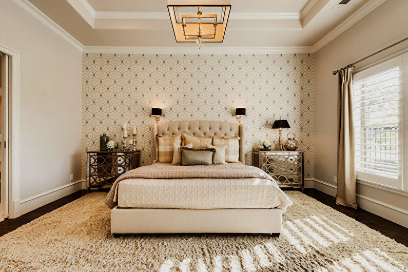 - Beige. Here it is - the very neutrality and versatility. Beige will never come out of a cage of fashionable shades. There is no need to select special furniture for it: practically everything that is a running color is suitable for it. If your bedroom is northern, choose delicate cream shades.