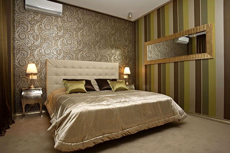 The most popular option is wallpaper companions. As soon as the design of the room with the combination of wallpaper was not just an option but a trend, manufacturers jumped at the idea. And now it is not always necessary to choose a pair yourself, wallpapers are already sold in the kit. Wallpaper in the bedroom can be combined for the following purposes: