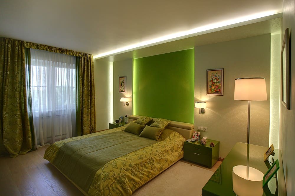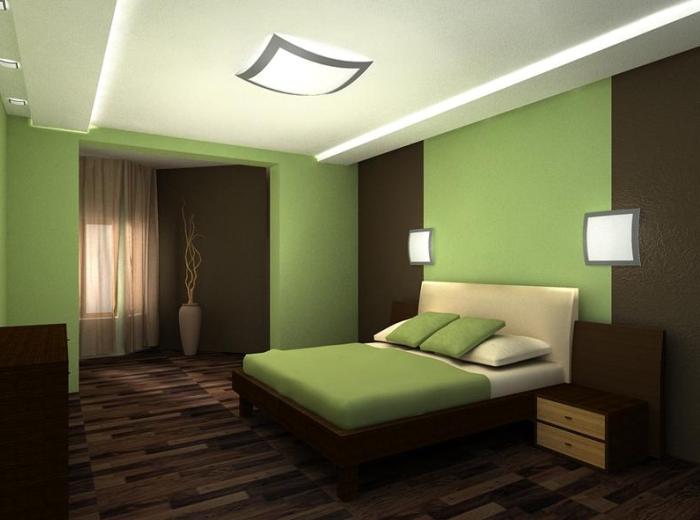 Many owners turn to Feng Shui, believing that the wise thoughts of this philosophical direction are not unfounded. The color in the bedroom, according to Eastern thought, depends on its location. For example, a bedroom located in the east or southeast will be well perceived with green wallpaper.