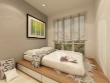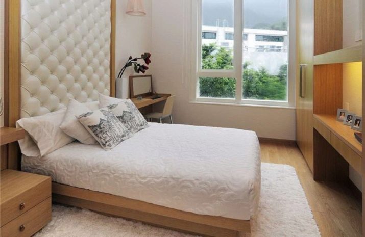 In modest rooms it is recommended to use wrought or wooden beds. Their base should be made of lamellae.