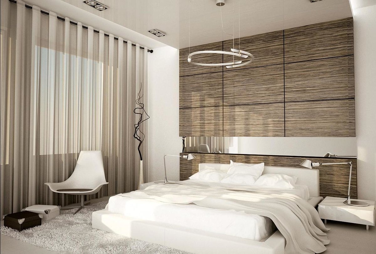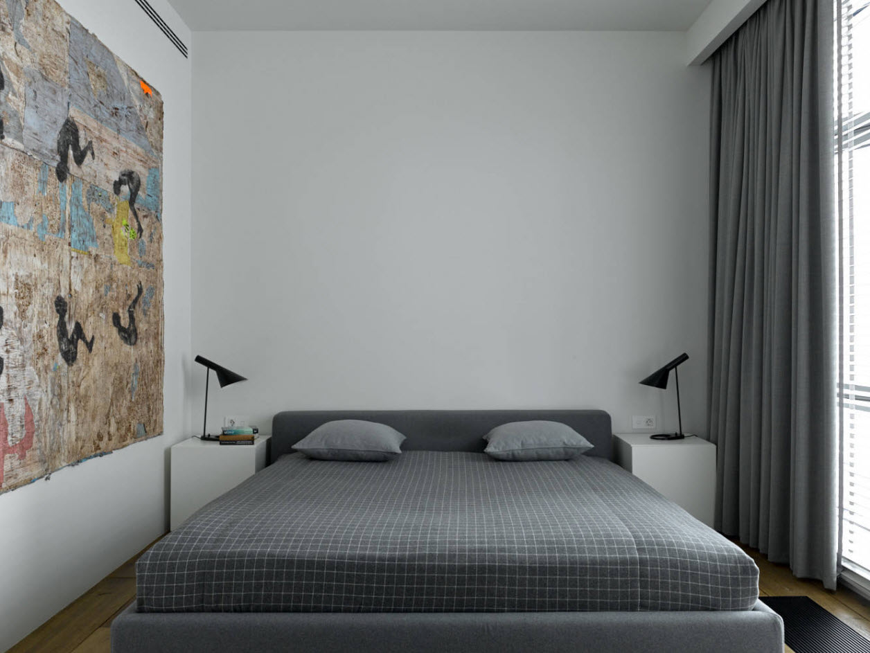 If the severity of modern interior is insufficient, you can choose minimalism. Such a style, as follows from its name, implies the choice of only those things that are really necessary. Harder will be the requirements for the selection of colors. The minimalist bedroom is almost completely painted in one color. To get rid of boredom helps the variation of textures and textures.