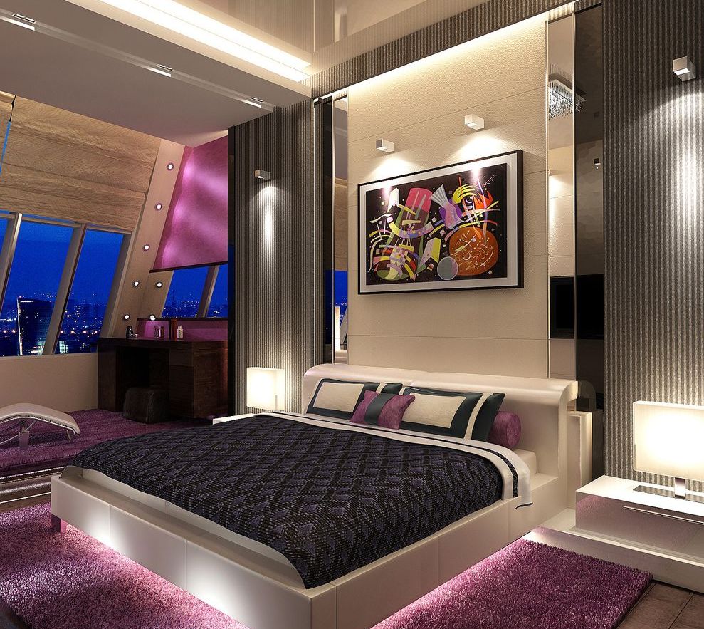 High tech, in contrast to minimalism, it is considered not quite appropriate for bedrooms. Its characteristic features are: