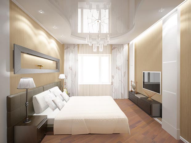 If the bedroom is square, there is no need to work on the transformation of its space. This type is considered the most suitable for a full life. To correct unsuccessful moments in the design often resort to installation of mirrors and additional fixtures.