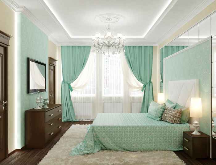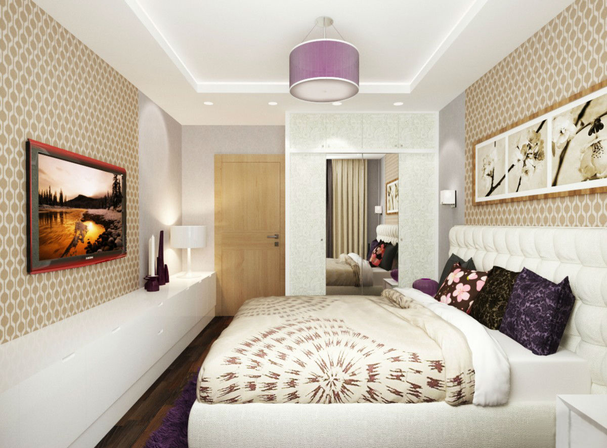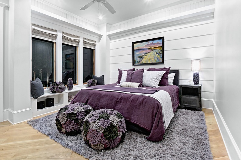 Bright saturated colors like red or orange will definitely not work for the bedroom, an excess of black and purple will look depressing. Such options can only be used as small accents.