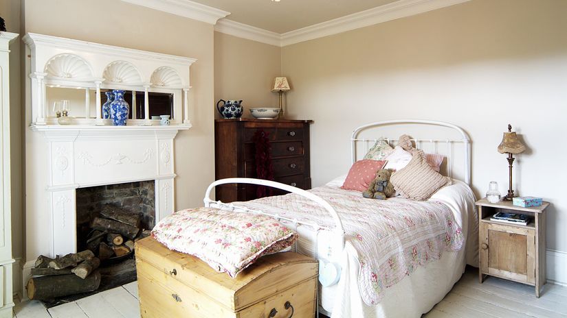 - Country Betting is done on wooden surfaces and simple materials. Therefore, in addition to the presence of a wooden bed, chest of drawers, frames on the windows, it is worth considering how to decorate the floor, walls, ceiling. They can be made of wood using different colors, or they can be made using artificial materials that imitate wooden surfaces.
