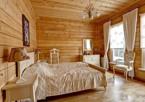 When decorating a bedroom with a tree, it is worth considering that the tree is an environmentally friendly and pleasant material in all respects, but it must be treated with a special coating that protects the surface from insects and moisture. This material is not cheap, but it looks stylish.