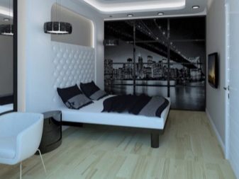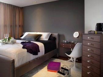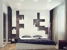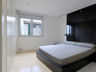 The easiest way is to decorate a room in such a modern style as minimalism. It requires calm shades, strict forms and the lack of excessive decor. As a rule, black, gray and white colors are used for decoration. The necessary accents are placed using small elements of a darker shade. The bed is matched low.