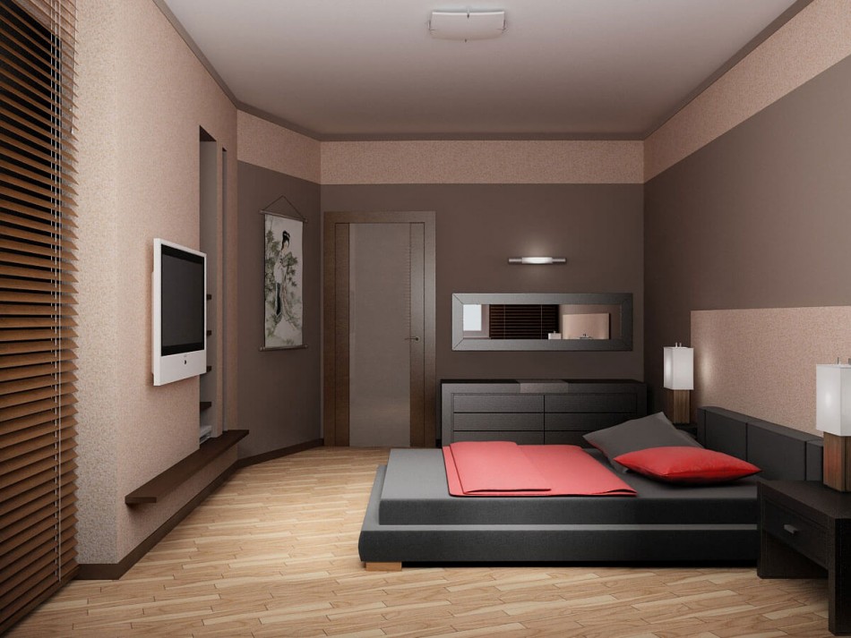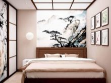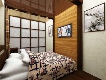 Japanese style close to minimalism, but is characterized by some features. For example, in such a bedroom one cannot do without a neat room bonsai, curtains devoid of frills, as well as a screen.