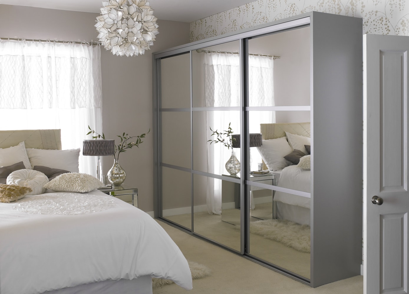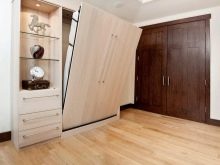 The use of wardrobe with mirrors, again meeting the main goal - expansion of space.