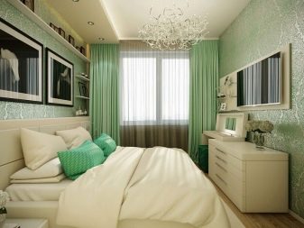 For a small bedroom, light shades that add air space are more suitable. Bright gloss, in general, in the bedroom should not be used, since it does not meet the main task - to create a space of calm and relaxation. In order not to be mistaken in the future to be able to change the style of the room without a full repair, it is better to choose white or pastel shades: pistachio, mint, soft blue, soft lemon or pink.