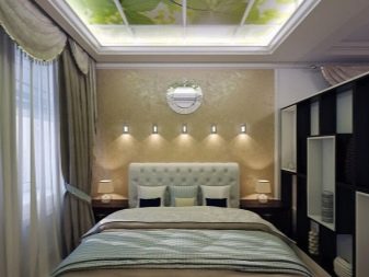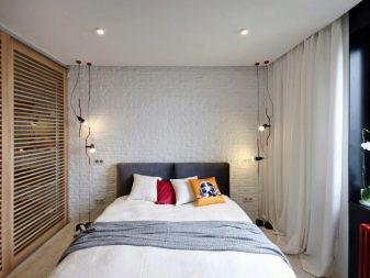 Lighting in a small room can radically transform a room.It is optimally placed in the center of a nice, but not very large lamp, and next to the bed on the bedside tables to put table lamps or hang a number of lamps. Stylistics of selected models should create the effect of lightness and comfort. Stretch ceiling can be equipped with spotlights.