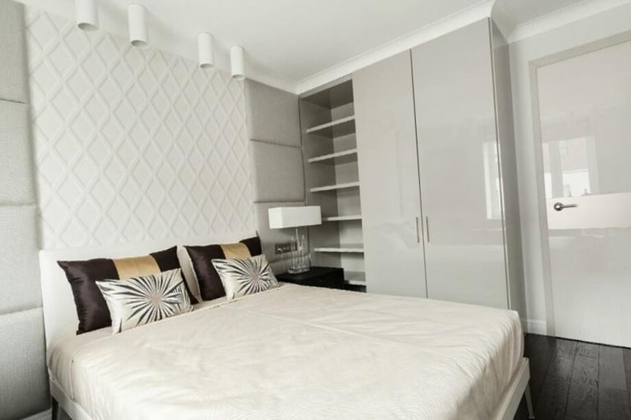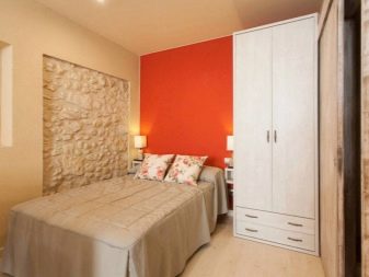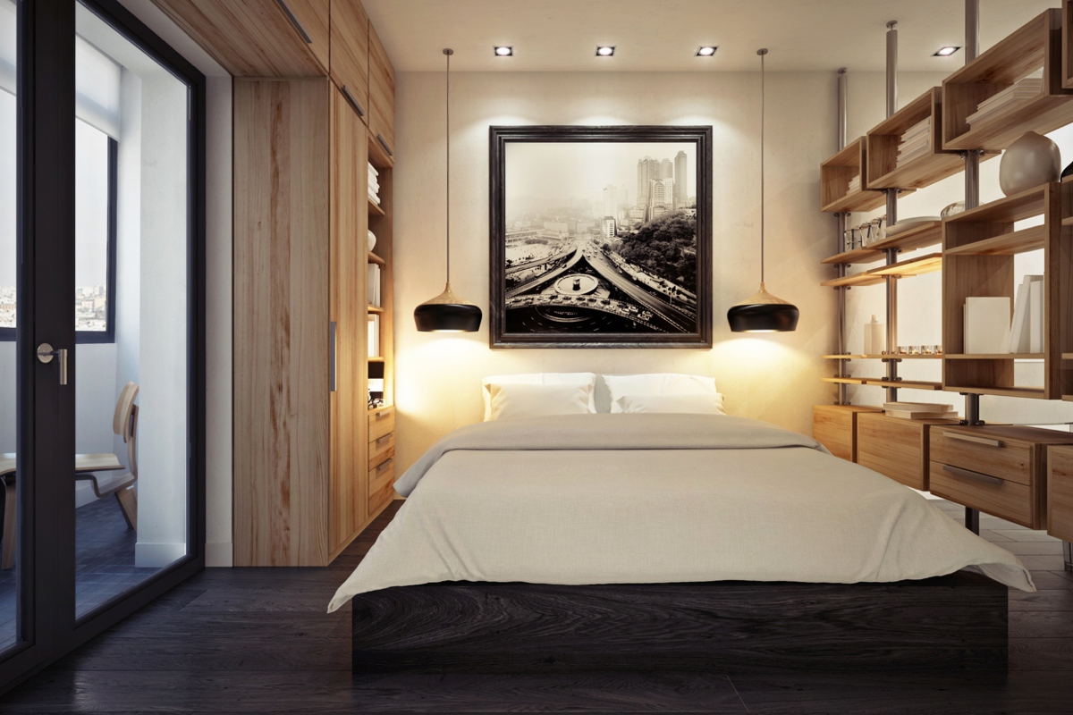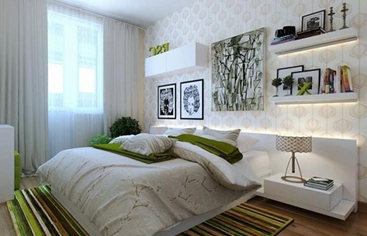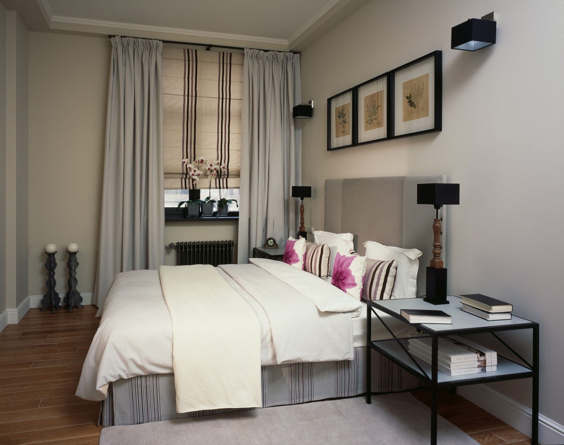 The main thing is not to overload the interior with a large number of things in a small room. Rest is impossible in a cluttered room: for example, if you make the under-bed space with boxes of things, your eyes will stumble on them all the time and your mood will deteriorate. From the decor it is best to choose paintings, photographs and various textiles. Photos will look good if you organize them in the form of a thoughtful collage, and as a picture pick up something abstract in a laconic frame.
