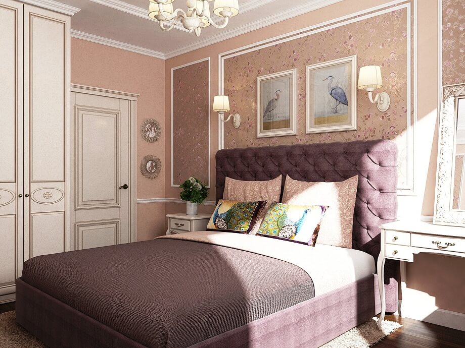 Wall covering is most often chosen for wallpaper, paint or decorative plaster. Regardless of the material, they must be light to create the desired visual effect. It is better to choose warm shades that create the necessary atmosphere for the bedroom calm and relaxation. The best are beige, cream, peach or ivory. One of the parties is not forbidden to decorate wallpaper with geometric or floral patterns of calm tones.