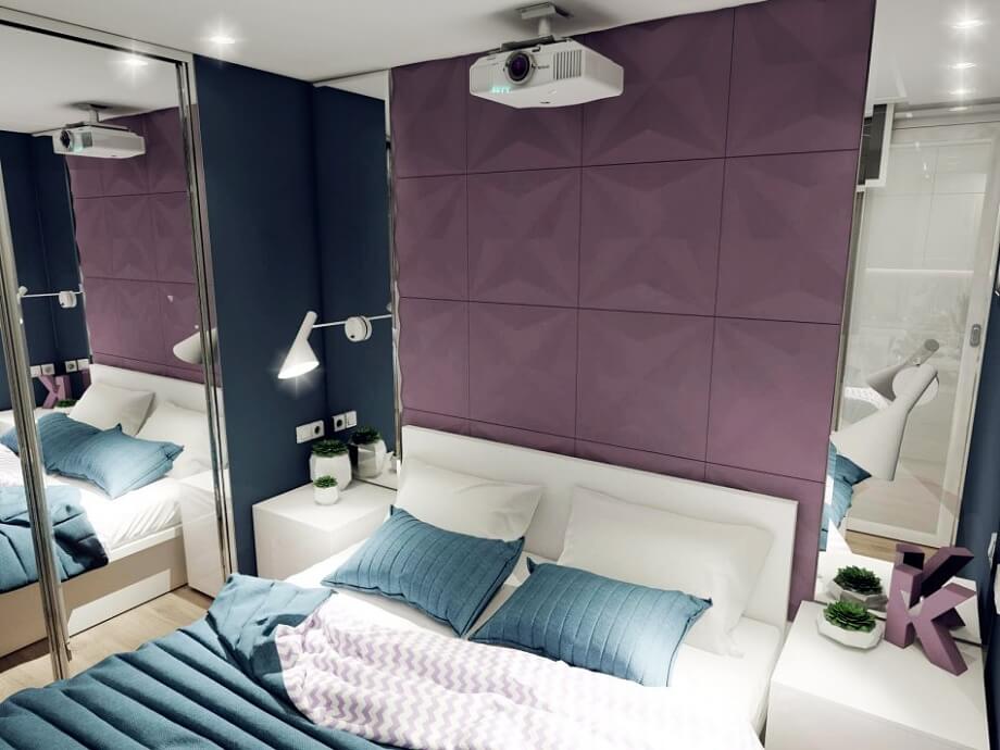 Making the ceiling, floor and walls in a small bedroom plays a very important role, because choosing the right shades and materials, you can visually add square meters and correct irregular shapes.