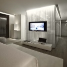 Hi-tech room should not be replete with painted details and sophisticated lines. There should be plain geometric, regular shapes. However, such simplicity does not in any way make such situations look “poor” or boring. They, on the contrary, must seem high tech and sometimes futuristic.