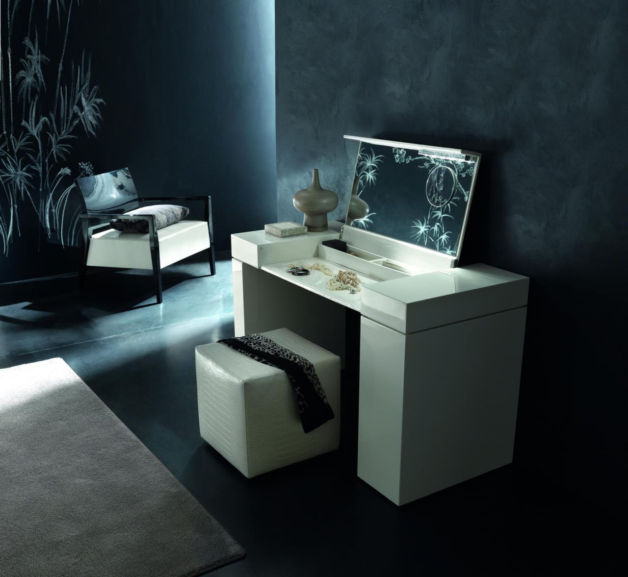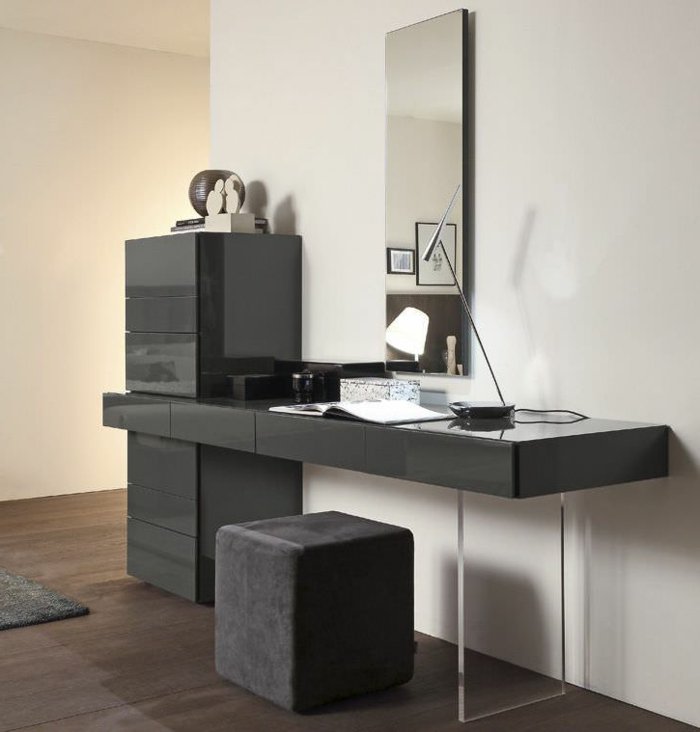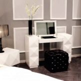 Such components as a dressing table, a dresser and an armchair will harmoniously fit into the high-tech bedroom. All the listed items should be simple, but stylish, devoid of pretentiousness and classic notes. You can purchase furniture that has non-trivial forms. For example, suitable chair in the form of a cube with a notch or tablet.