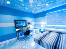 For the bedroom in the direction of high-tech should select the appropriate materials of finishing. Consider in detail what options will be appropriate for different reasons.