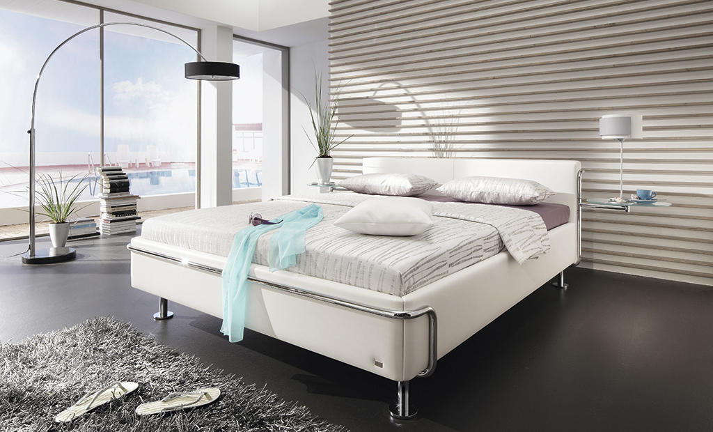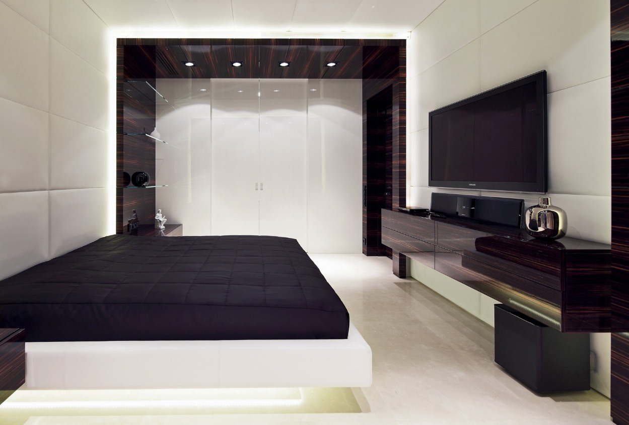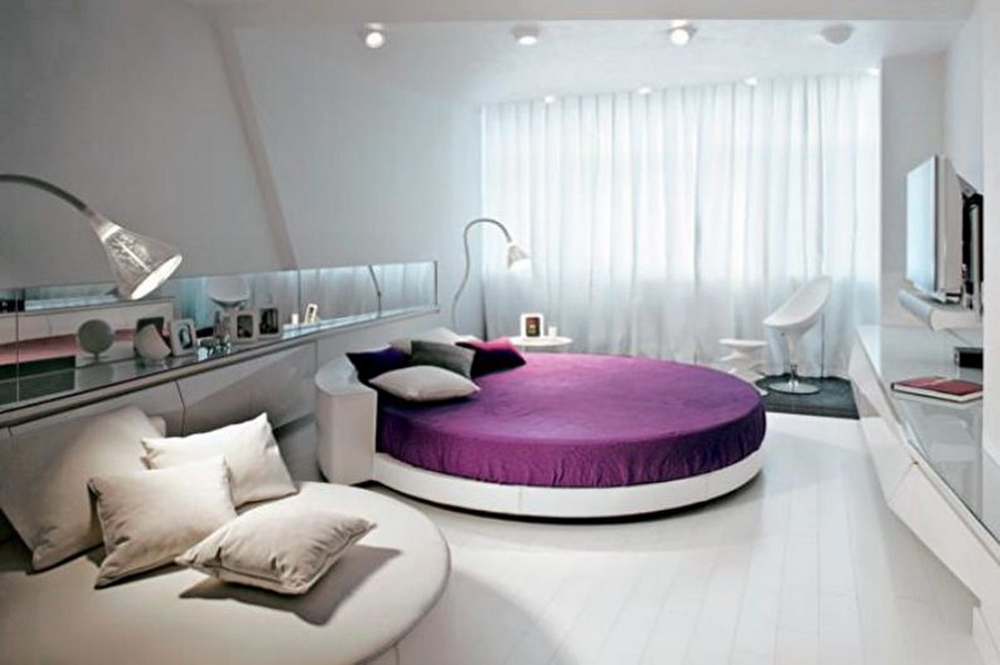 For high-tech bedroom should select the appropriate furniture. The main detail is the bed. This piece of furniture should be ergonomic, concise, with clear outlines. It is advisable to select mobile options.As a rule, these are low and wide models without backs and high legs.