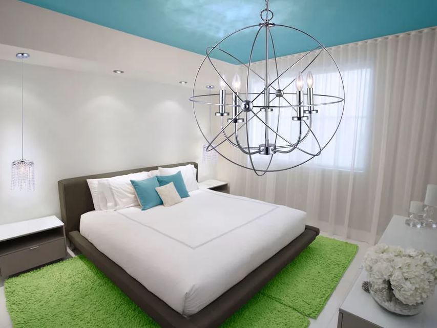 Lighting in the bedroom should be placed based on functional feasibility. The light base can be provided by the ceiling lighting device, and the local light source can be provided by light bulbs by the sleeping bed, armchairs, mirrors and various storage systems in the room.