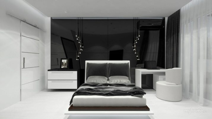 All pieces of furniture and headsets in the high-tech bedroom may have a matte or glossy surface. The latter looks especially elegant and modern. It is desirable that all components were functional and practical.