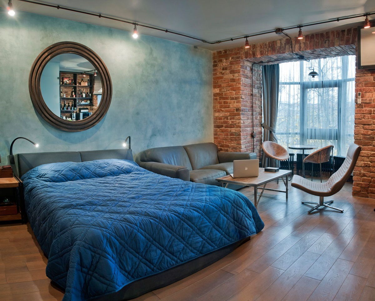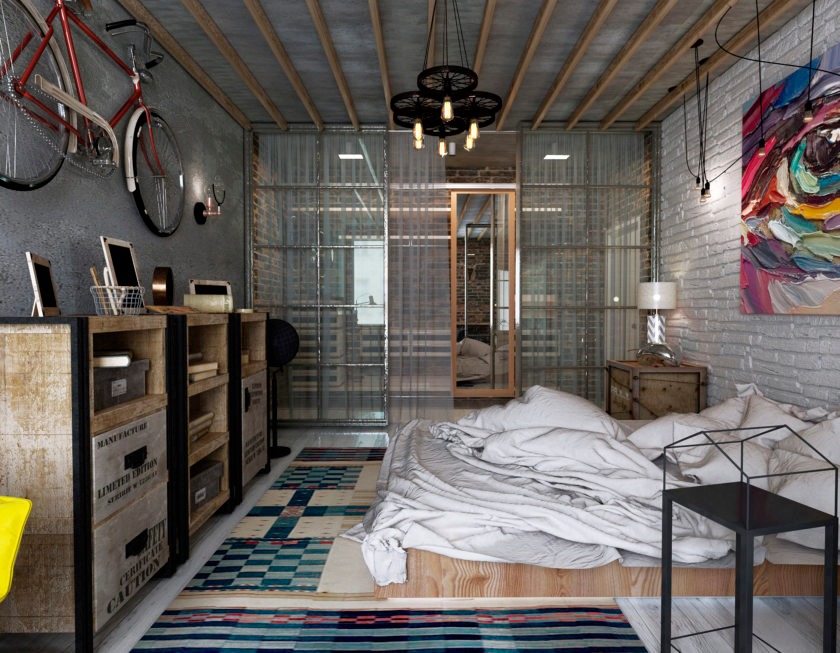 Despite the fact that it is often problematic to create an interior in a loft style in the conditions of urban apartments in our country, modern people are in no hurry to abandon it. At the same time, depending on the nuances of the layout and available footage, The bedroom in the interpreted style can be not only a functional area of an open-plan apartment.. This can be a combined room with two functional areas (for example, a bedroom-living room or a bedroom-bathroom).