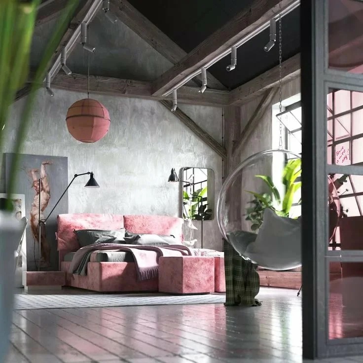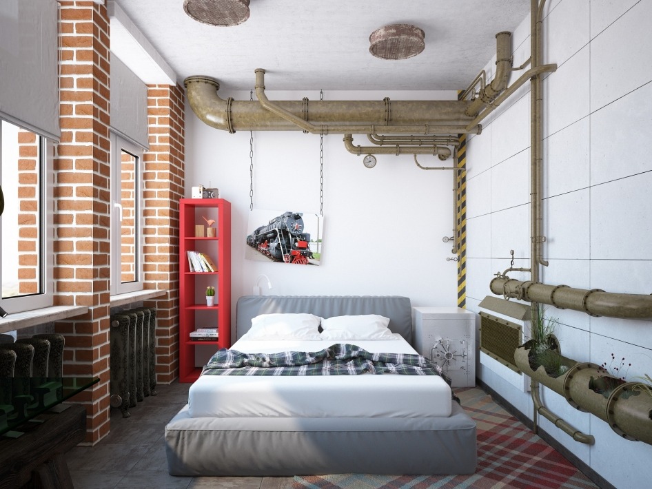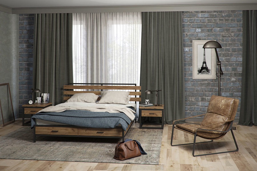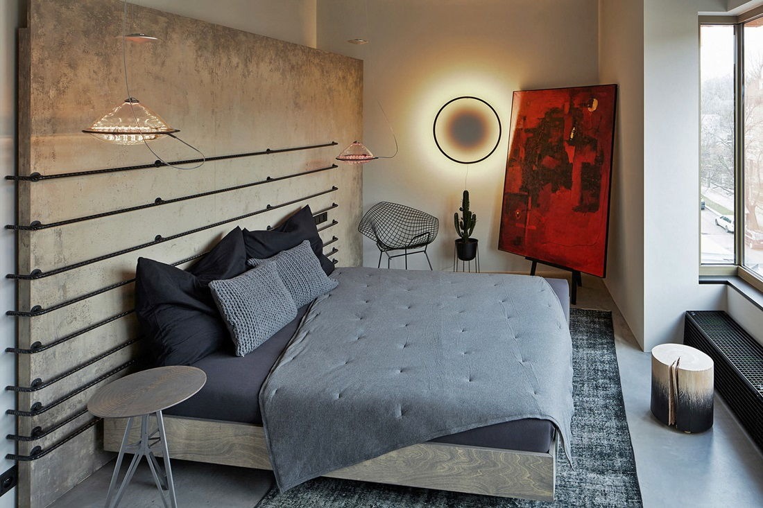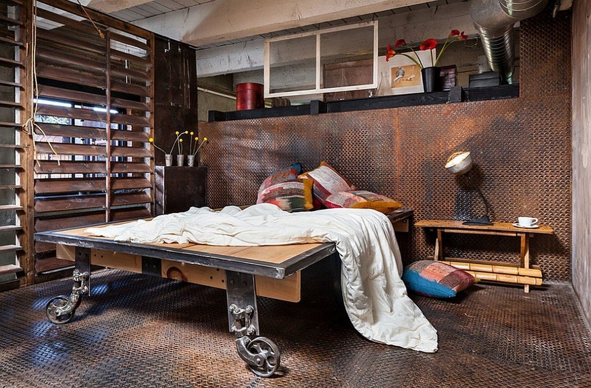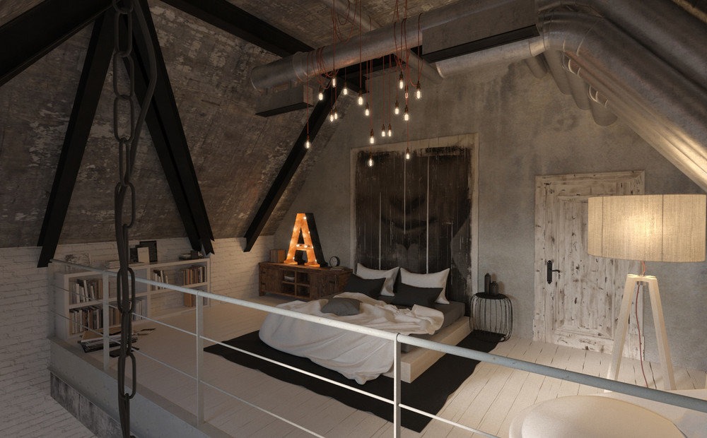 - Loft-style bedroom with metal.