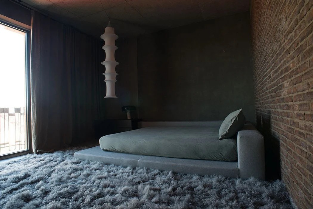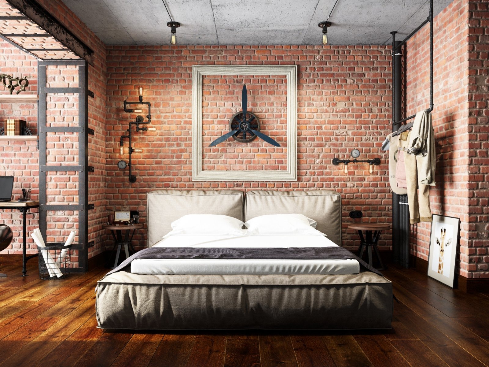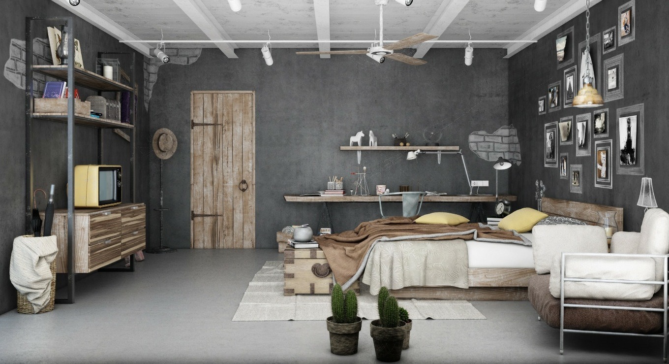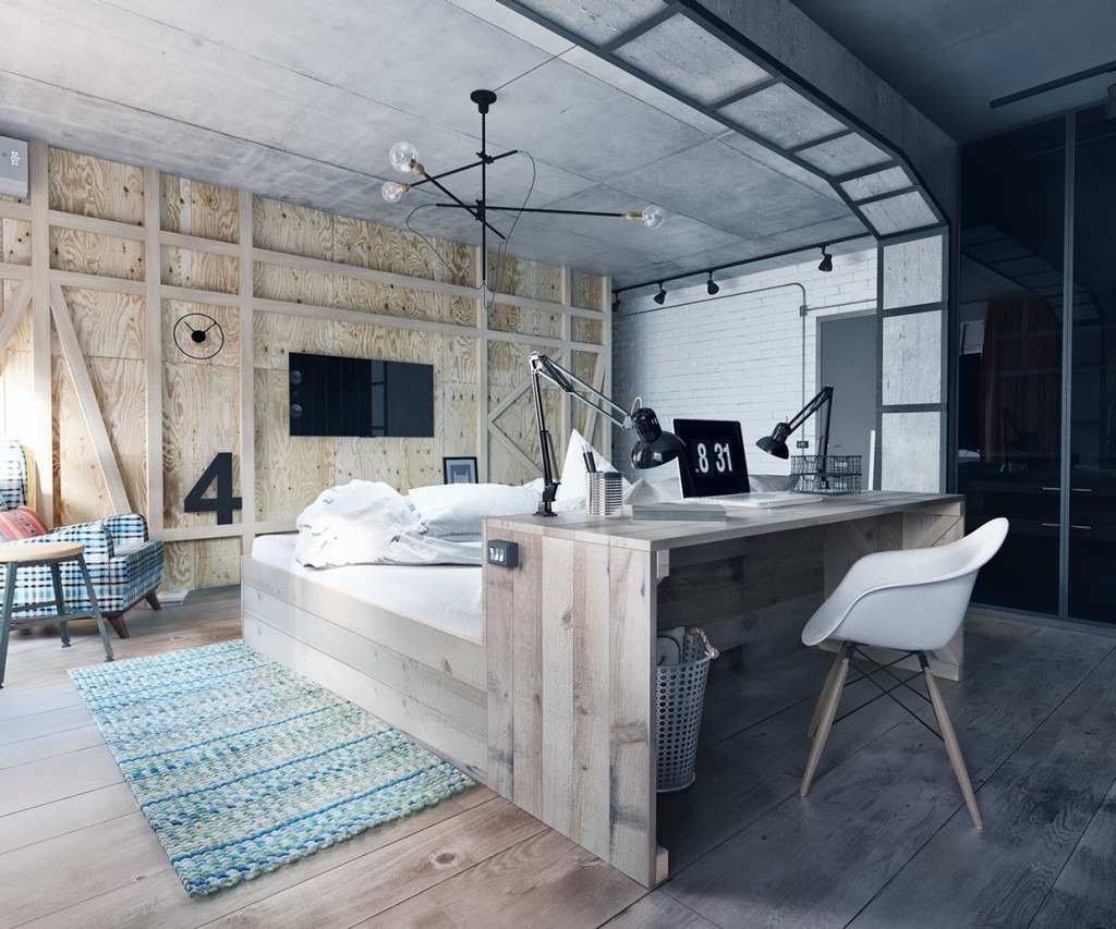 - Loft-style bedroom with metal.