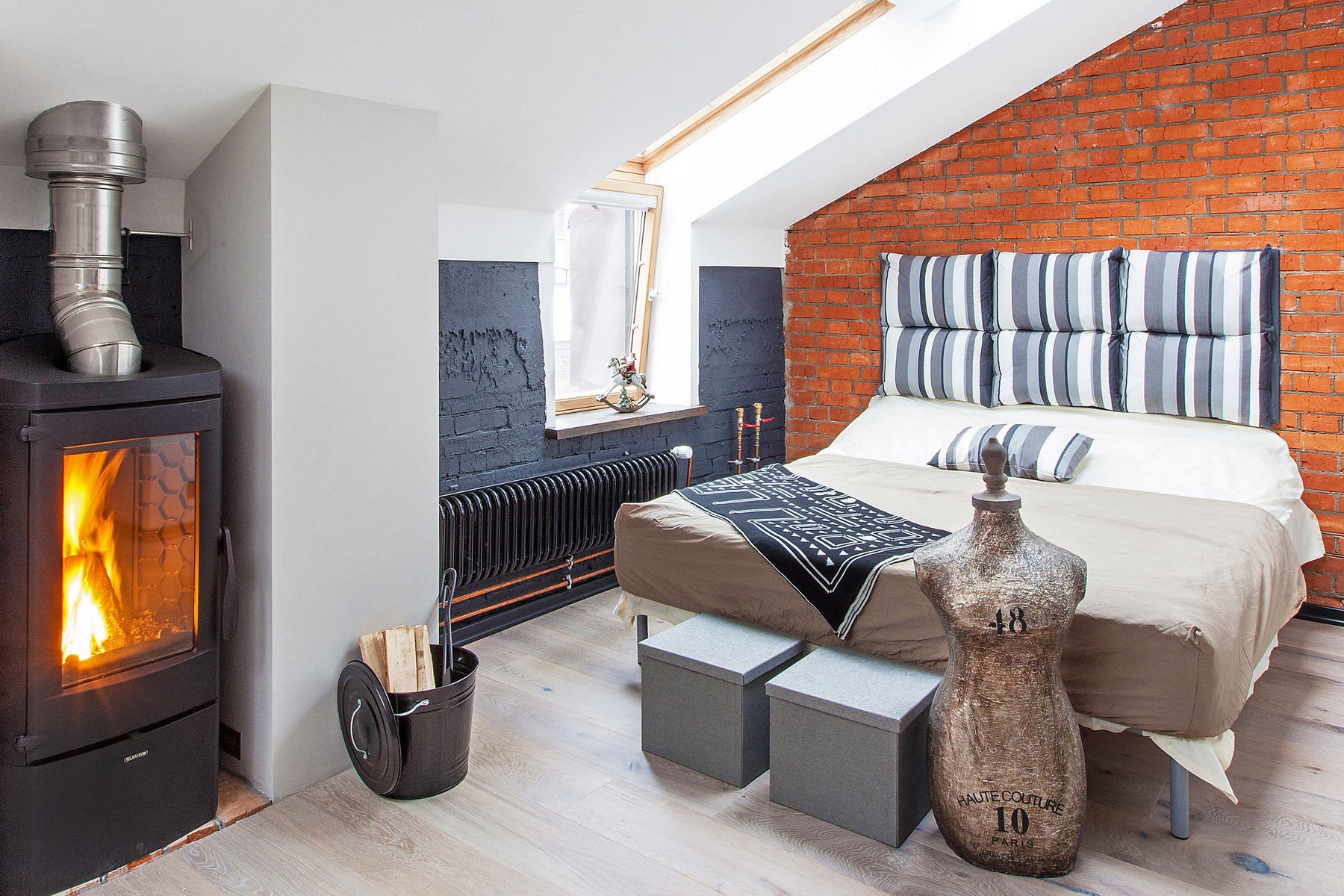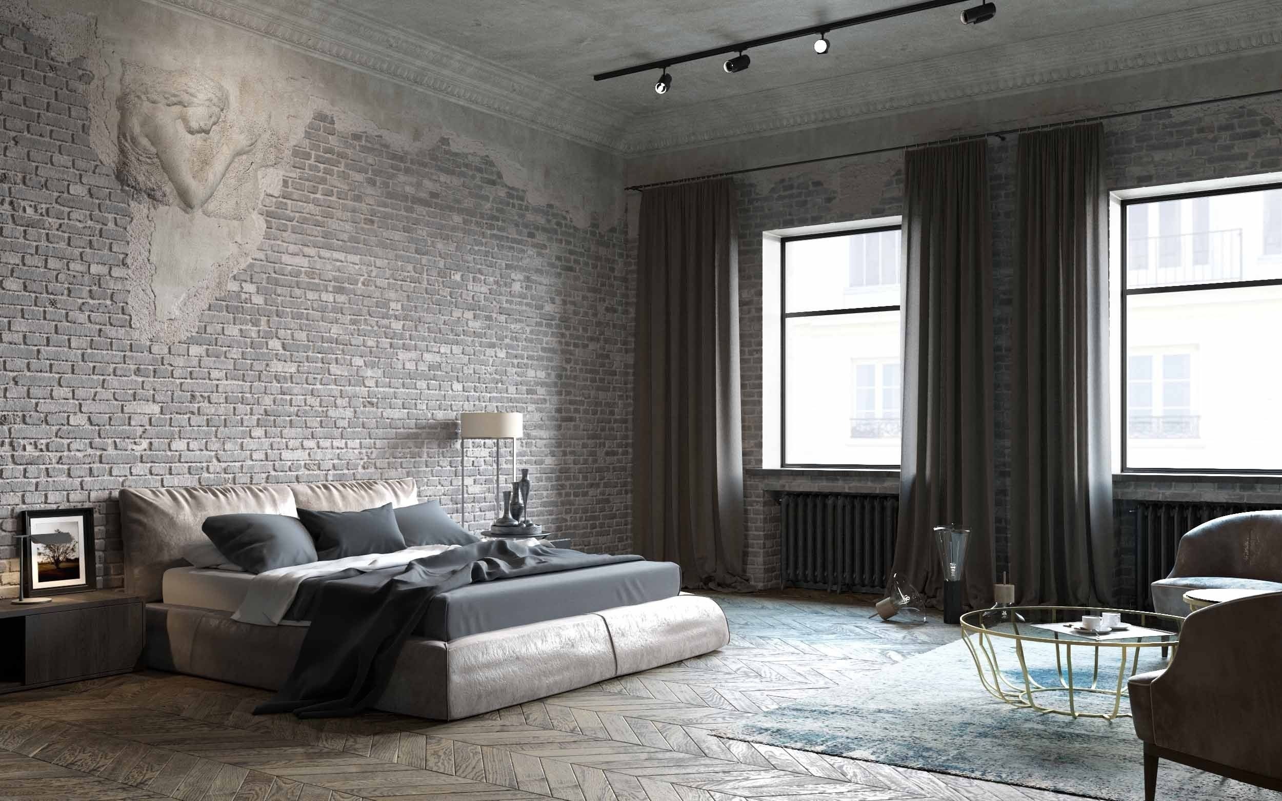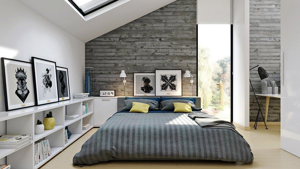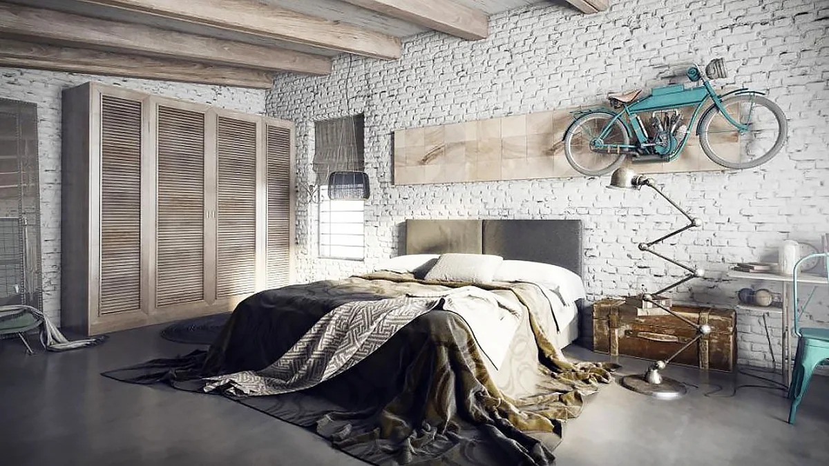 The idea of adapting an industrial object as a living space was the basis of the loft style. The fundamental features of the bedroom interior in this style today are certain features that make the style recognizable. For example, these include: