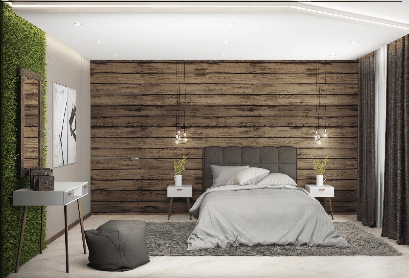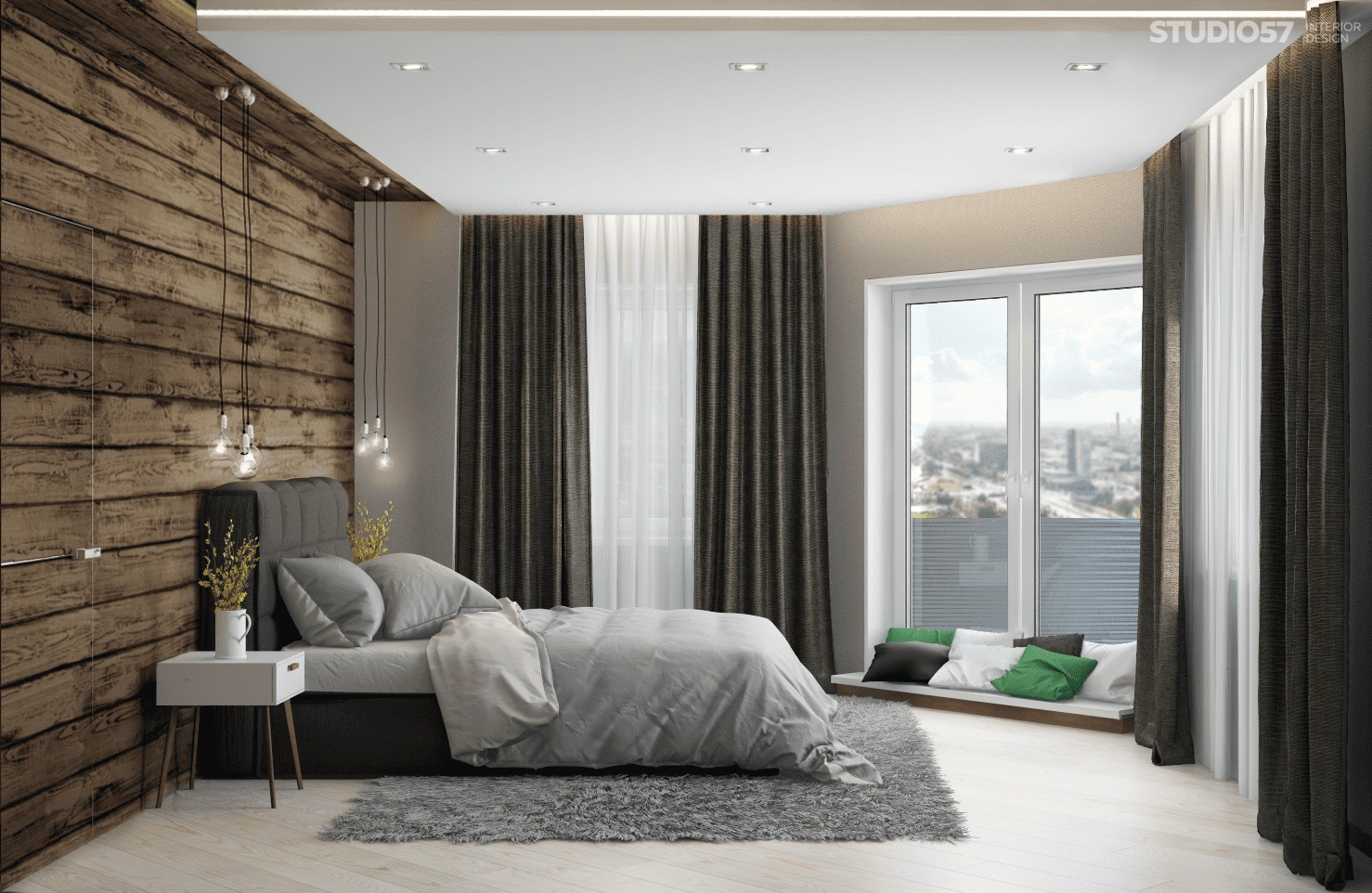 - An example of a bedroom with curtains.