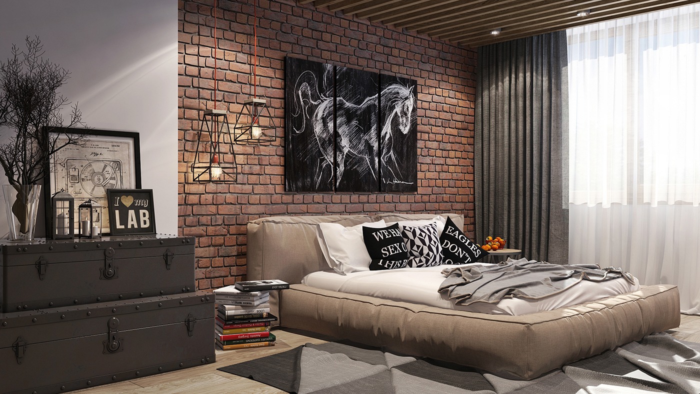 Making a bedroom in a man’s home is radically different from the design that a woman sees in front of him. A man, wherever he is, is first of all important comfort. He rarely pays attention to trifles, and therefore there is almost never a little extra in his bedroom. That small part of the accessories that may appear here is set deliberately carelessly, which brings a special flavor to the design and underlines its brutality.