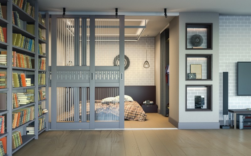 Bed in the bedroom loft must be placed in a prominent place. The only thing that is allowed here is a small partition, the role of which in most cases is assigned to a small rack or a folding type screen. If the footage of a particular room allows, it is better to use an internal window for zoning, which will look very impressive. When you need privacy, you should resort to false walls or use a wardrobe to divide the space of the bedroom.