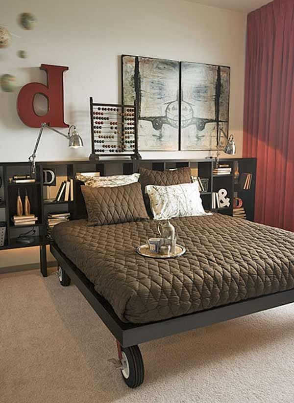 Decorating is not peculiar to men, but because the interior of the bedrooms, as well as other rooms, is designed in the spirit of minimalism. The guys do not equip the room with pretentious elements of furniture, do not hang family portraits on the walls and do not put fresh flowers in vases.However, even a picture simply stuck to a wall in their bedroom will look much more interesting than a large portrait or a huge family photo. In this case, the man is better organized storage space for their clothes.