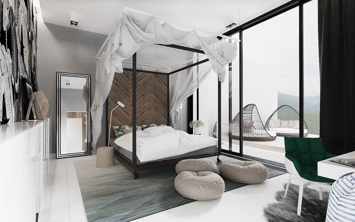 No need to put everywhere live flowers in crystal or ceramic vases. There must be a sense of proportion in everything. If you decide to create a canopy, there is no need to hang heavy curtains or patterned curtains on the huge windows. With an abundance of textiles, a different type of texture that successfully contrasts against each other is lost. In this case, the finish begins to compete with accessories, which distracts the eye.