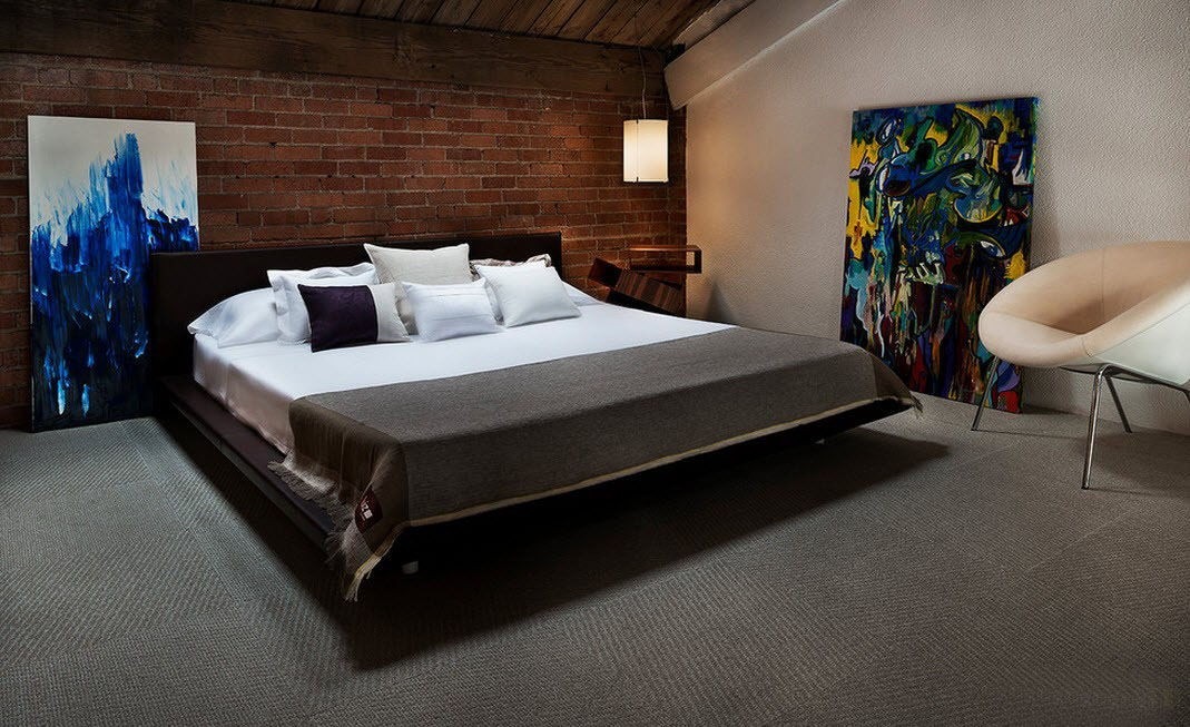However, in three tones the brutal style bedroom color solution is rarely bypassed. As a rule, bright colors and unusual color combinations are infused into the interior. Together with the available background, they set the right mood for the whole room, bring in it along with a certain chaos notes of bohemian or grunge. Bright colors can be used in prints of posters or even abstract paintings, as well as other unusual interior accessories.