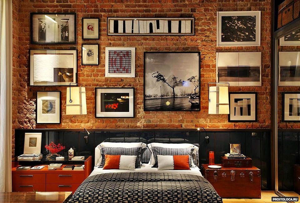If there is a useful area, you can equip a bedroom of brutal style with a fireplace, and it can be either real or in the form of a portal with candles. The number of useful acquisitions should include chairs of unusual design. They will not only fit into the overall picture of the bedroom-living room, but also serve as pedestals for abstract paintings or other design accessories.