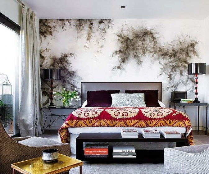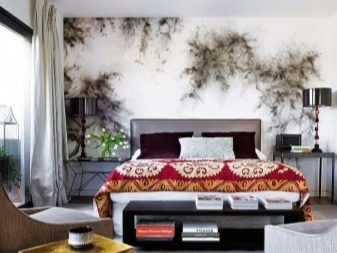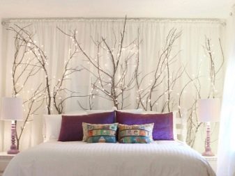 The main feature of the headboard décor is that it often replaces global room renovation. It is enough to change the design of this area, so that the whole bedroom is transformed, there is a feeling of just completed repair. This is especially noticeable if the wallpaper is light, solid and can be the basis for any interesting solution in terms of decor.